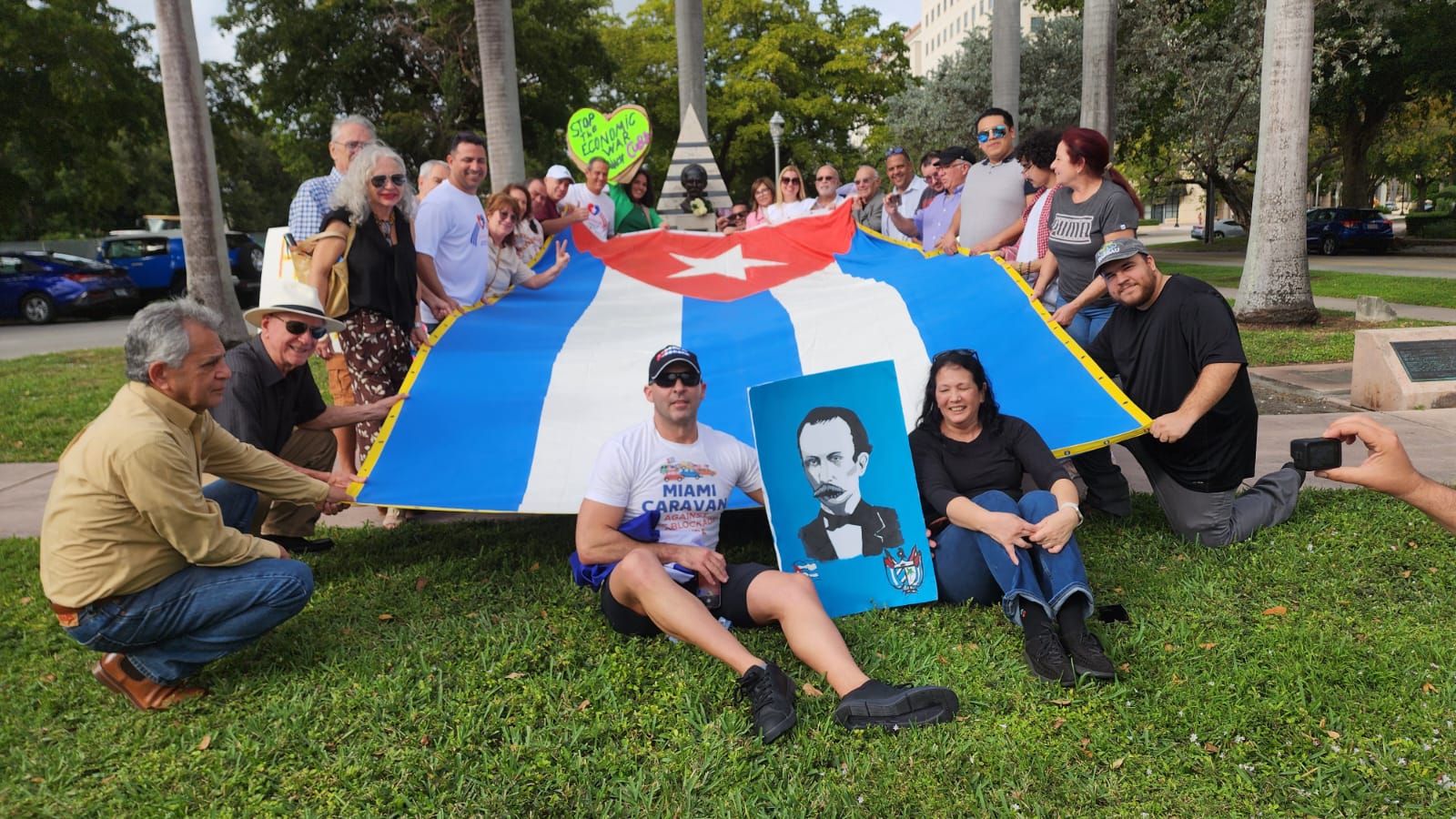 The patriotic emigration from Miami gathered on this 171st anniversary of the birth of our national hero Jose Martí, many Cubans of good will united by the Homeland gathered in the Coral Gables park where an emblematic bust of Martí is located to pay tribute and place white flowers to the apostle, the most universal of all Cubans, José Martí