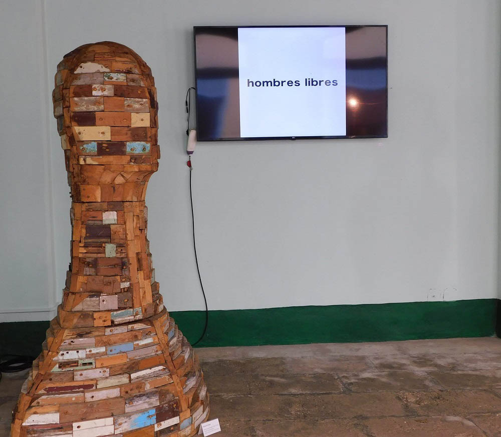 Since then, contacts through institutions, centers, and individual artists have been increasing, based on a historical cultural and artistic relationship that has antecedents, even before the revolutionary period, to strengthen those ties of exchange after 1959 and until today in the sphere of visual arts, favored by the cultural and artistic programs of Cuban institutions and the Ministry of Culture of Cuba. Among the large group of Cuban visual artists, the curator Pepe Fernández selected first-rate creators who have re-semanticized and recreated African roots and thus included Manuel Mendive, Michel Mirabal, René Peña, Roberto Diago, Ramón Haiti, among others. Choco, for example, took up a work from those he made during his time in Angola years ago, Guinguindo, which he recreated in 2018; Roberto Chile includes a work in which multiple photos appear as a mural; Jorge Mata has left us a jewel of a book-art work entitled The Artist’s Book, a different reading, in which he has added a 7-minute video to the book itself with its magnificent images; the Cuban sculptor José Duverger has extracted a two-meter sculpture from a trunk, an openwork figure in which he displays a technical mastery worthy of mention; Luis Lamothe has been included, an artist who died young and whose woodcut work on display reveals the connection with that distinctive figuration that characterized him.