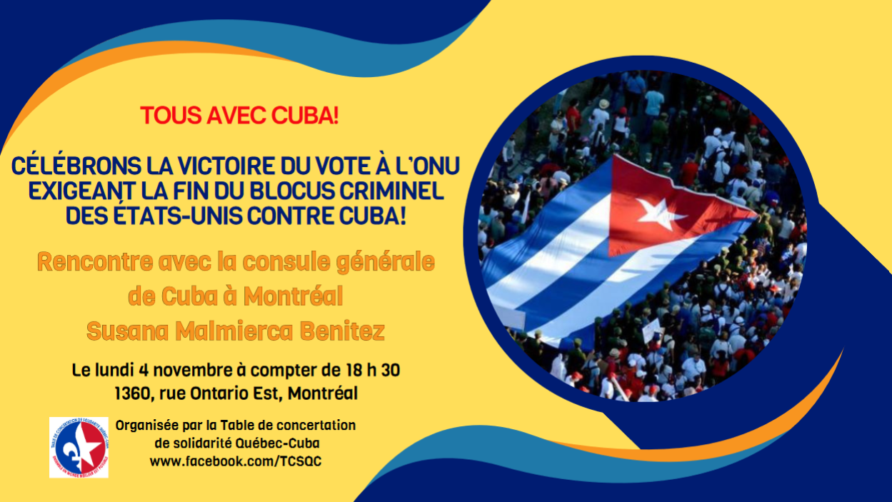 CÉLÉBRONS LA VICTOIRE DU VOTE À L’ONU EXIGEANT LA FIN DU BLOCUS CRIMINEL DES ÉTATS-UNIS CONTRE CUBA!