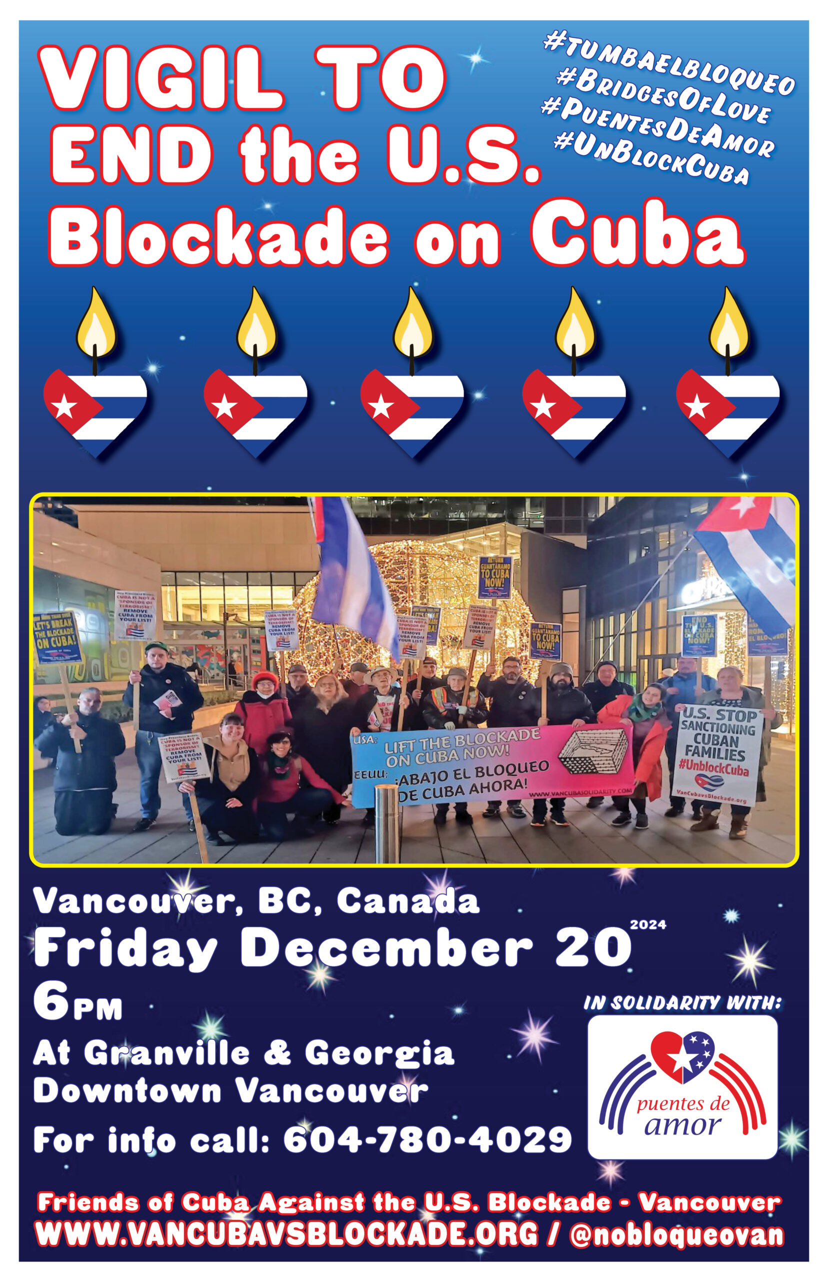 Join in the Vancouver vigil in solidarity with Cuba as we unite against the unjust and genocidal US blockade on Cuba and demand: