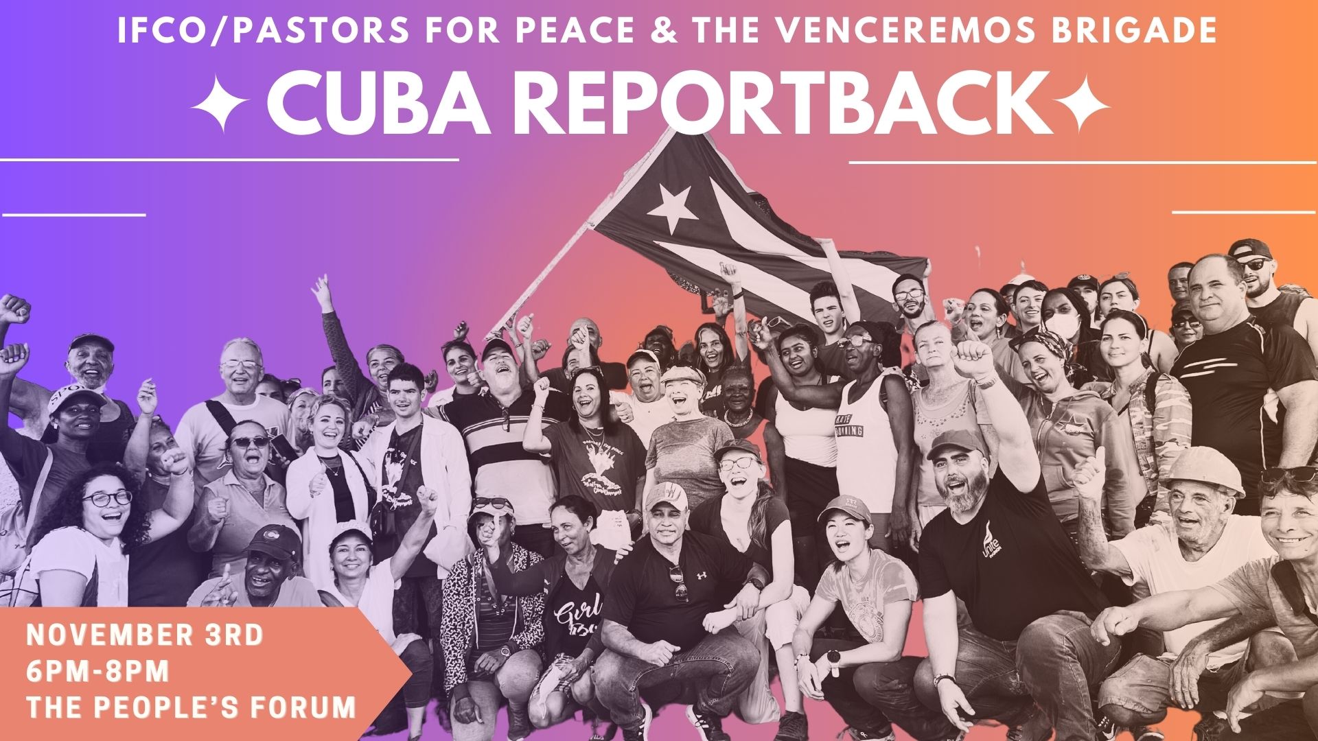 Join Pastors for Peace and The Venceremos Brigade as they share their experiences from their most recent travels to Cuba. Cuba has been blockaded by the U.S. for 63 years, and yet Cuba still an example to the world of solidarity and resistance.