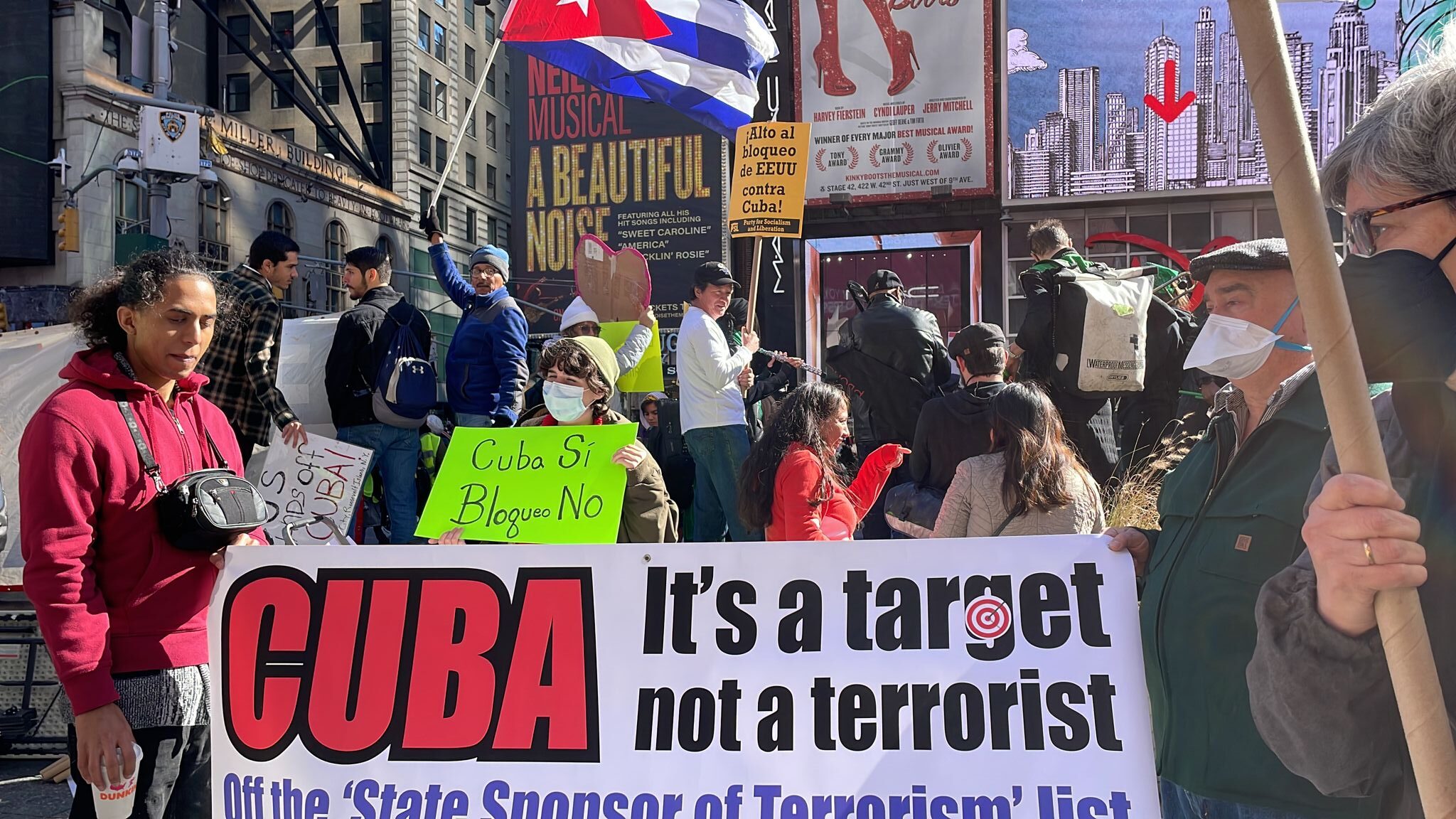 The protesters have three demands: End the U.S. blockade, remove Cuba from the U.S. list of state sponsors of terrorism, and lift all travel and economic restrictions on Cuba.